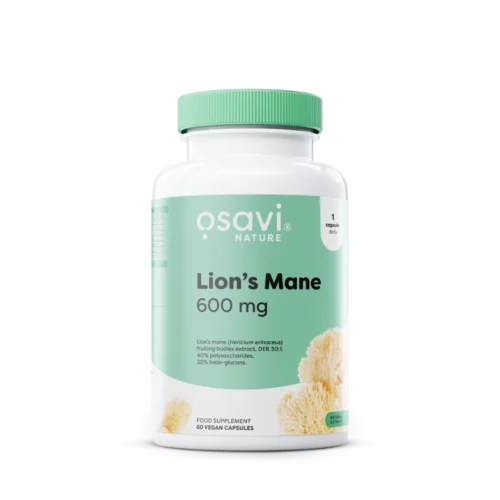 Lion’s Mane 600 mg von Osavi enthält einen hochdosierten Extrakt aus dem Fruchtkörper des Igelstachelbart-Pilzes (Hericium erinaceus), einem in Asien seit Jahrhunderten geschätzten Vitalpilz. Der Extrakt ist im Verhältnis 30:1 konzentriert und standardisiert auf mindestens 40 % Polysaccharide, darunter mindestens 120 mg Beta-Glucane pro Kapsel.